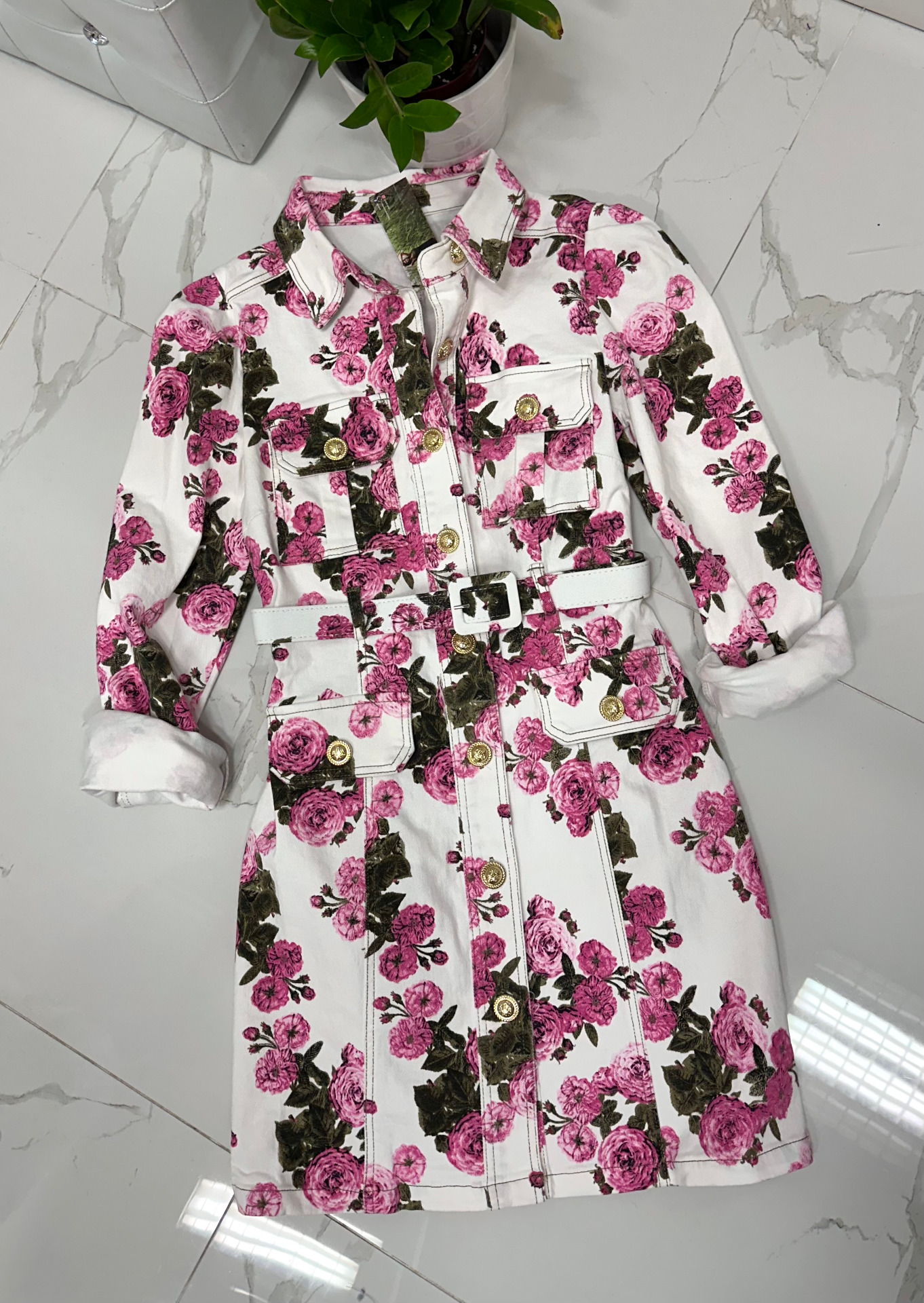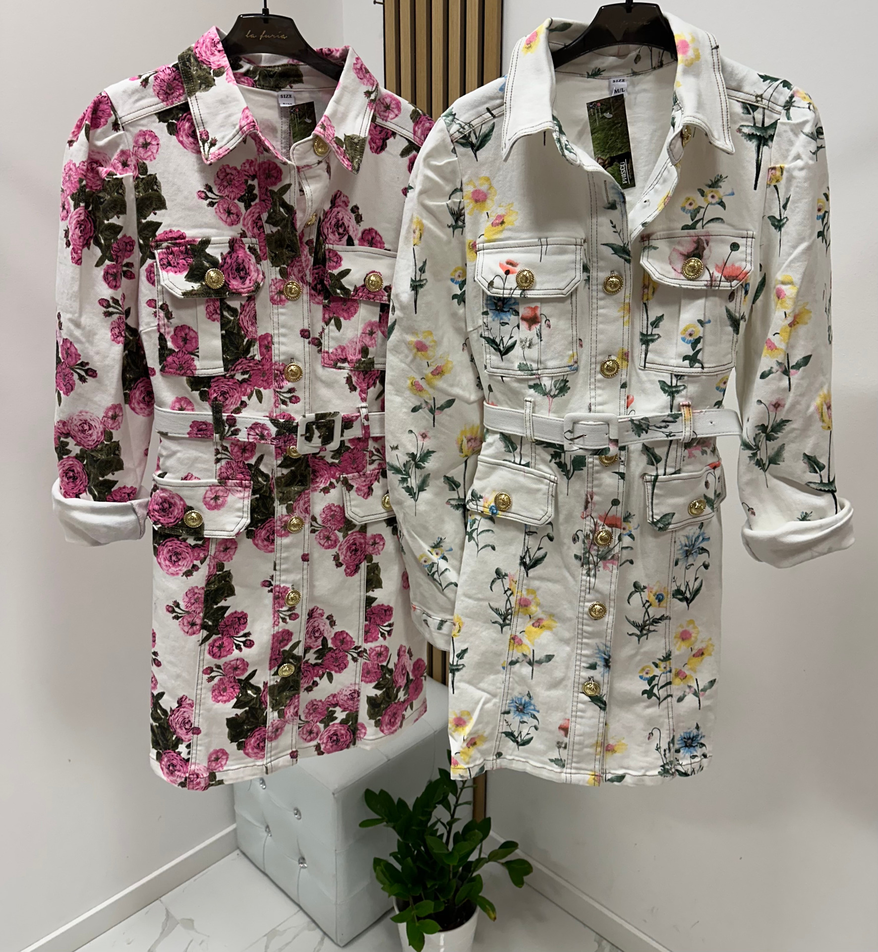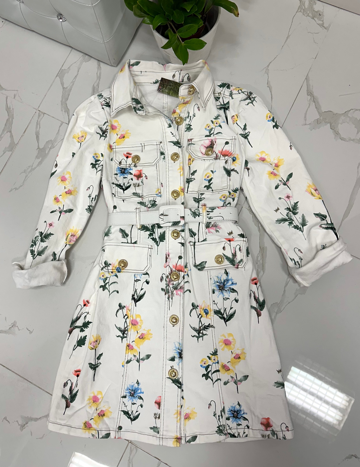 FRANCOISE riflové šaty s květy WHITE