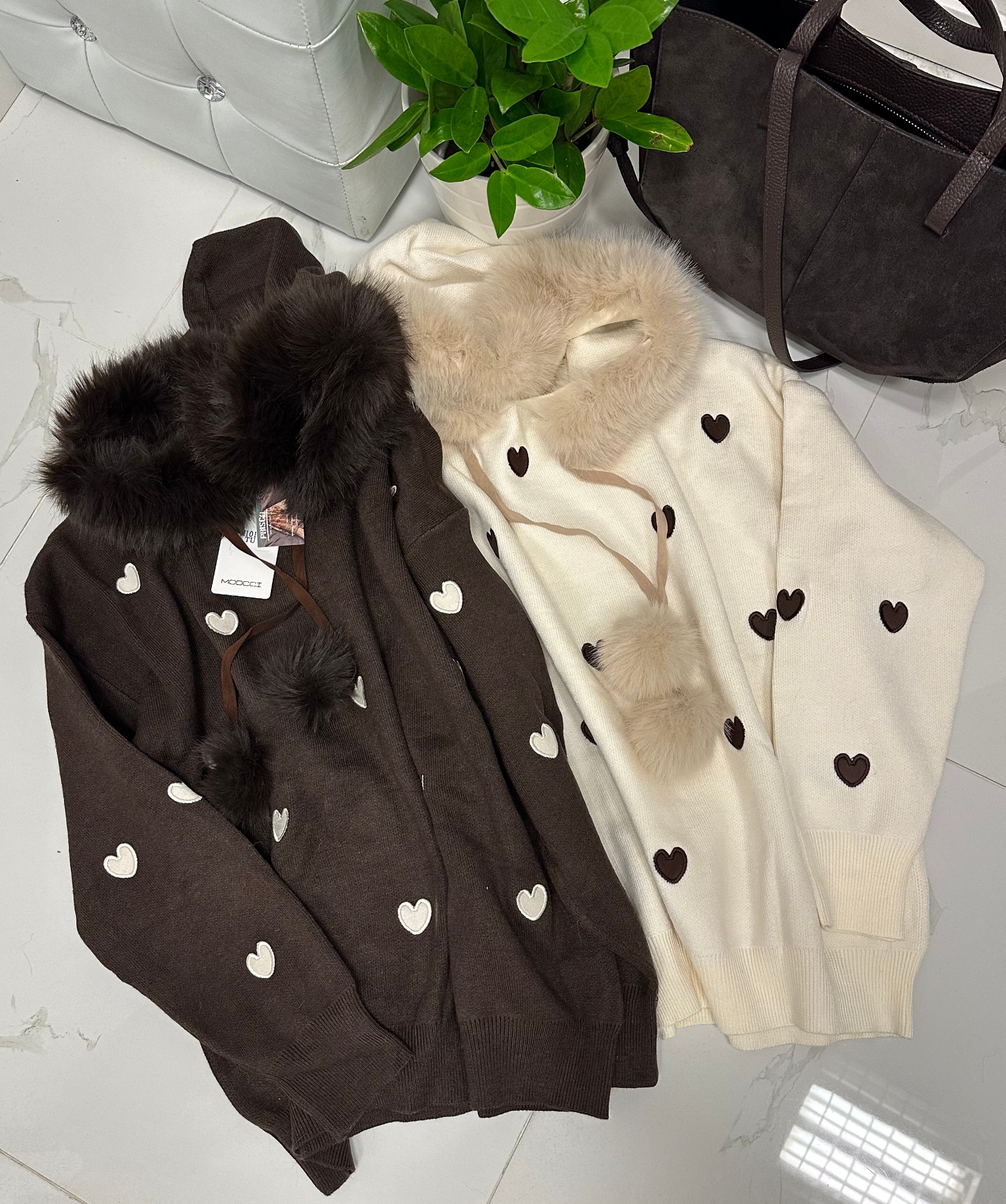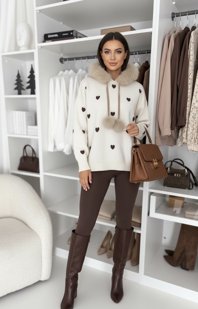 MOCHY svetr s kožešinou - srdce