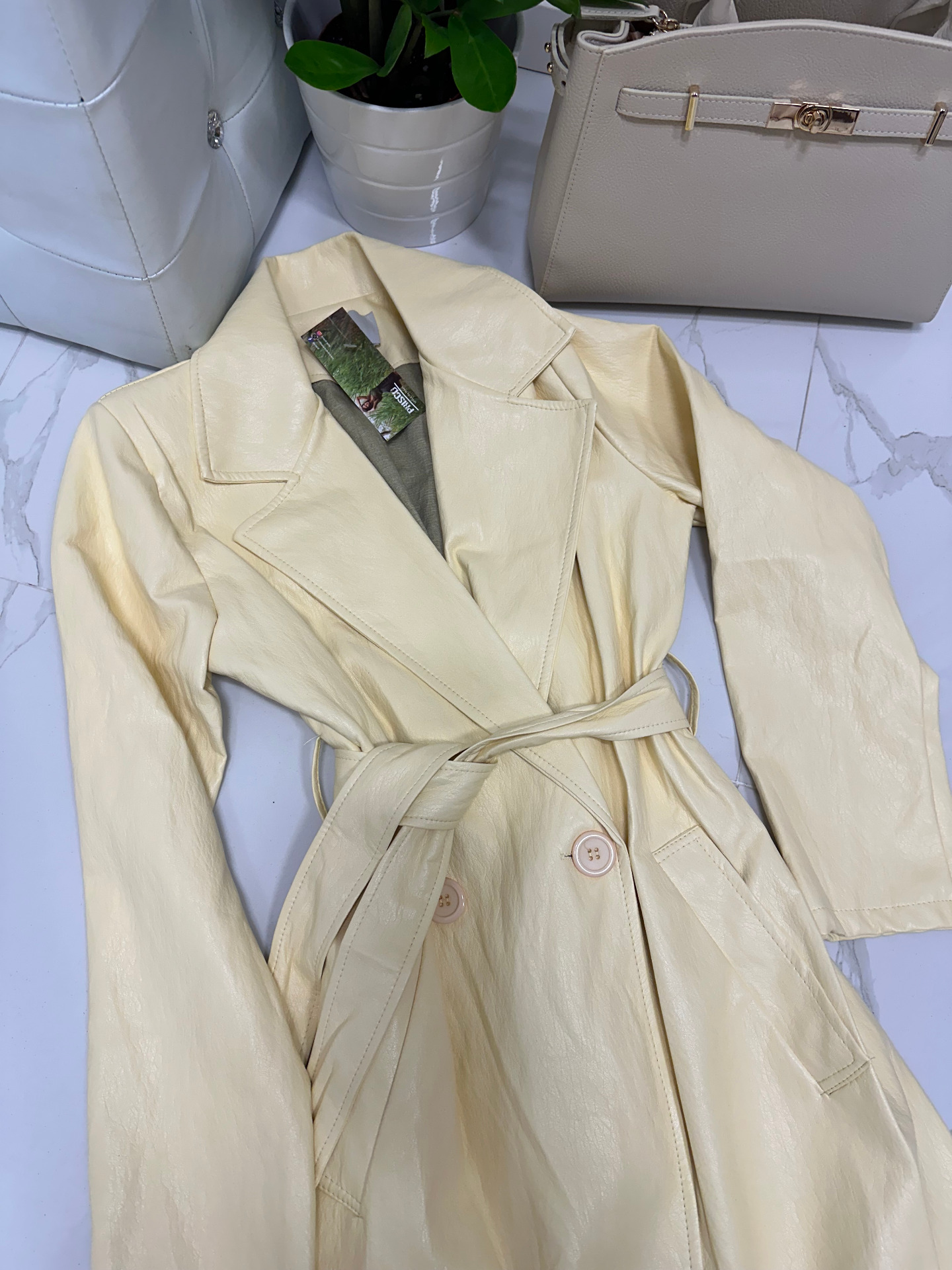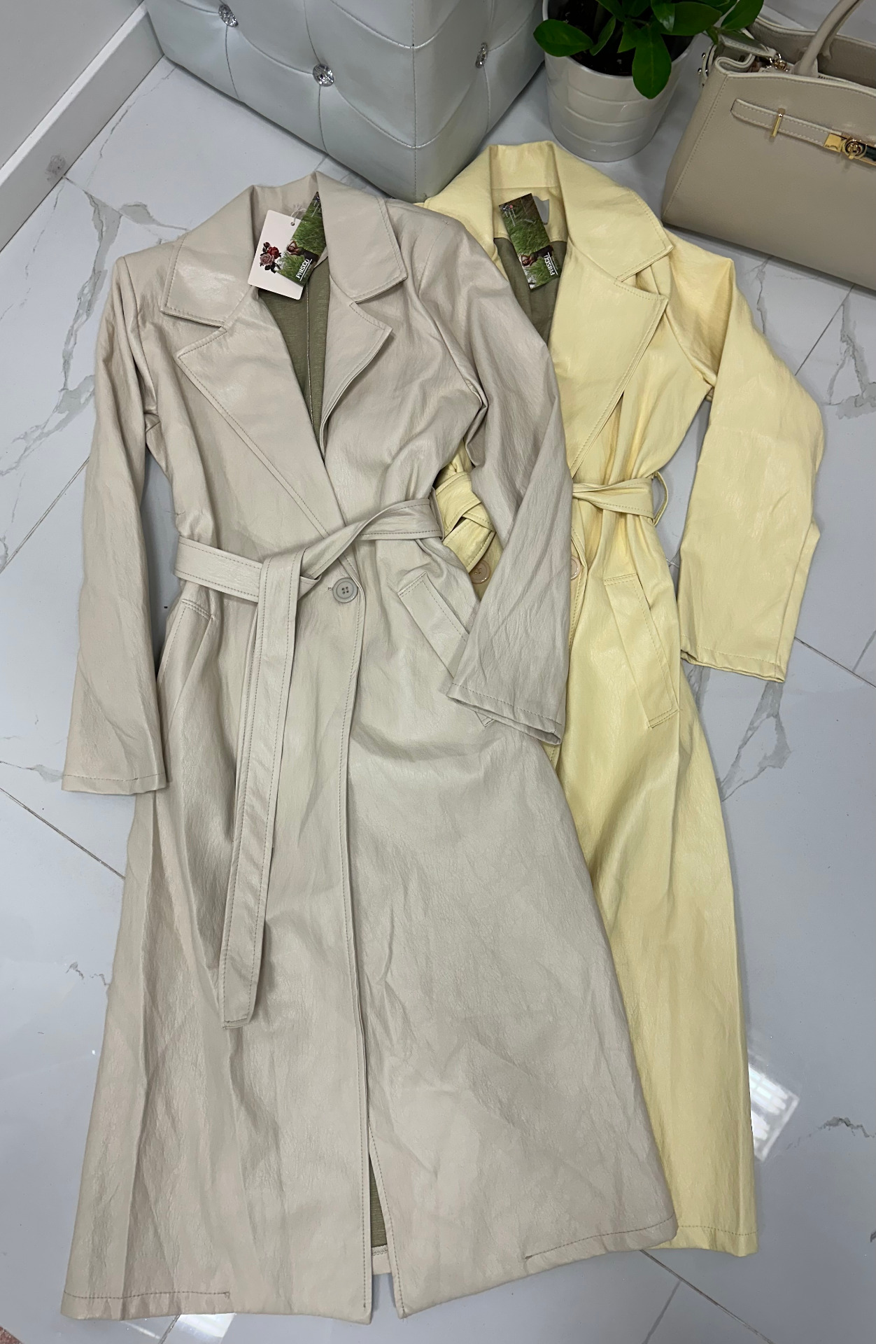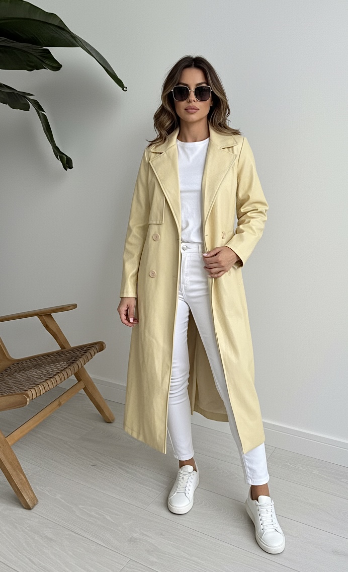 MODA ITALIA dlouhý koženkový plášť