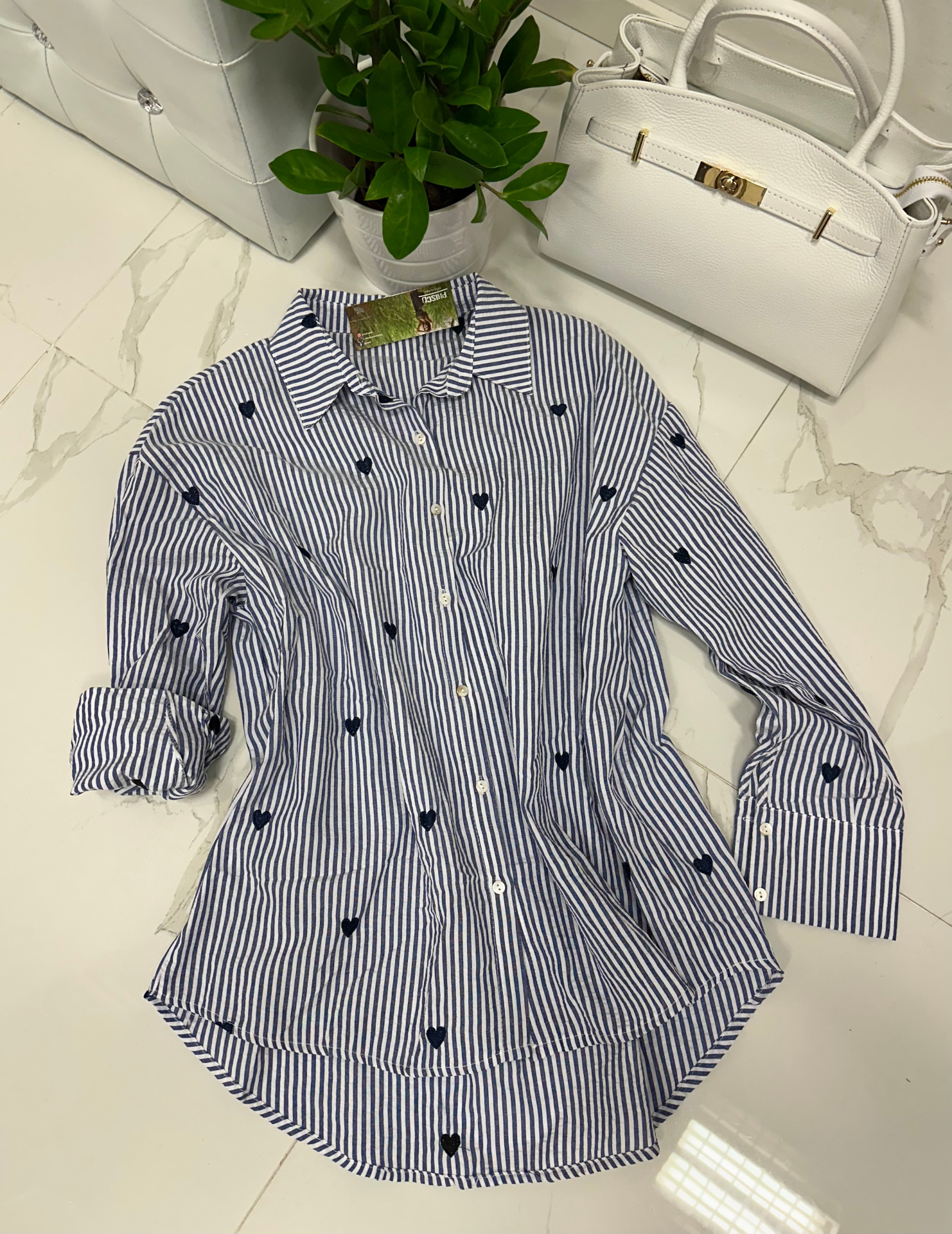 MODA ITALIA pruhovaná košile se srdci